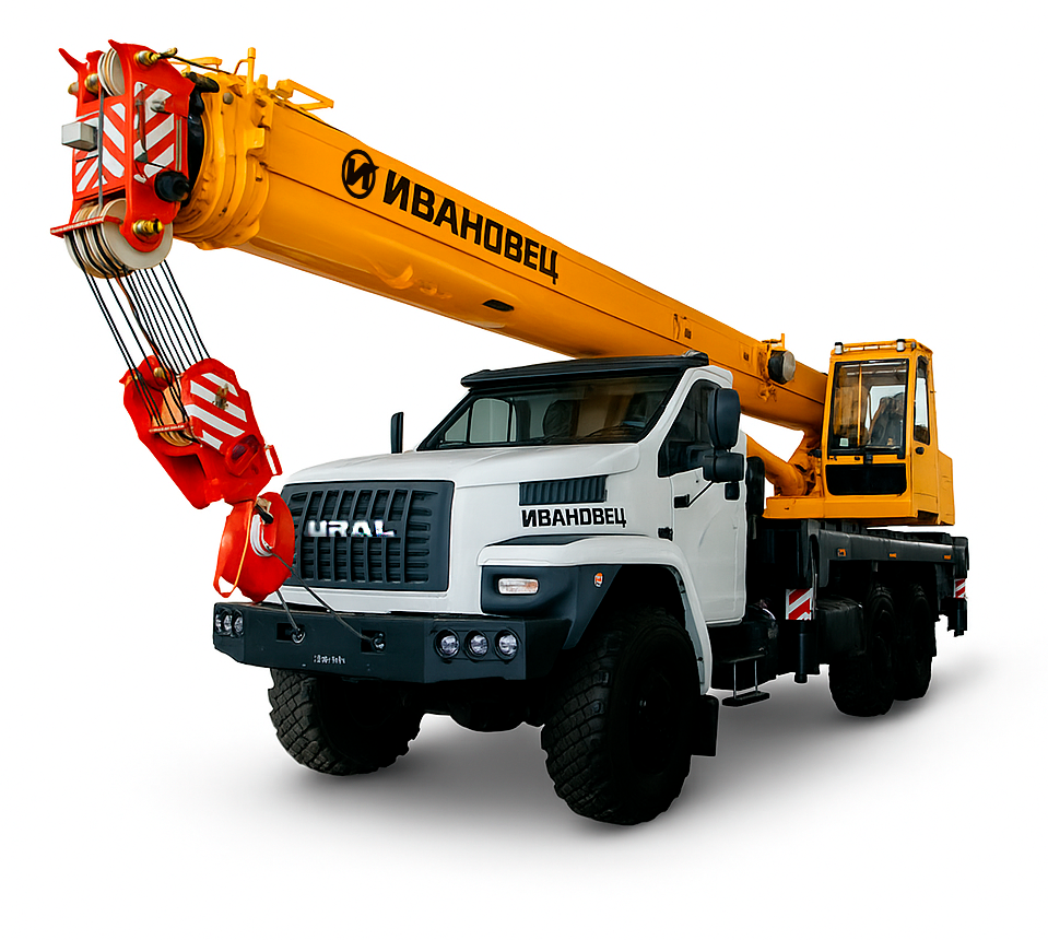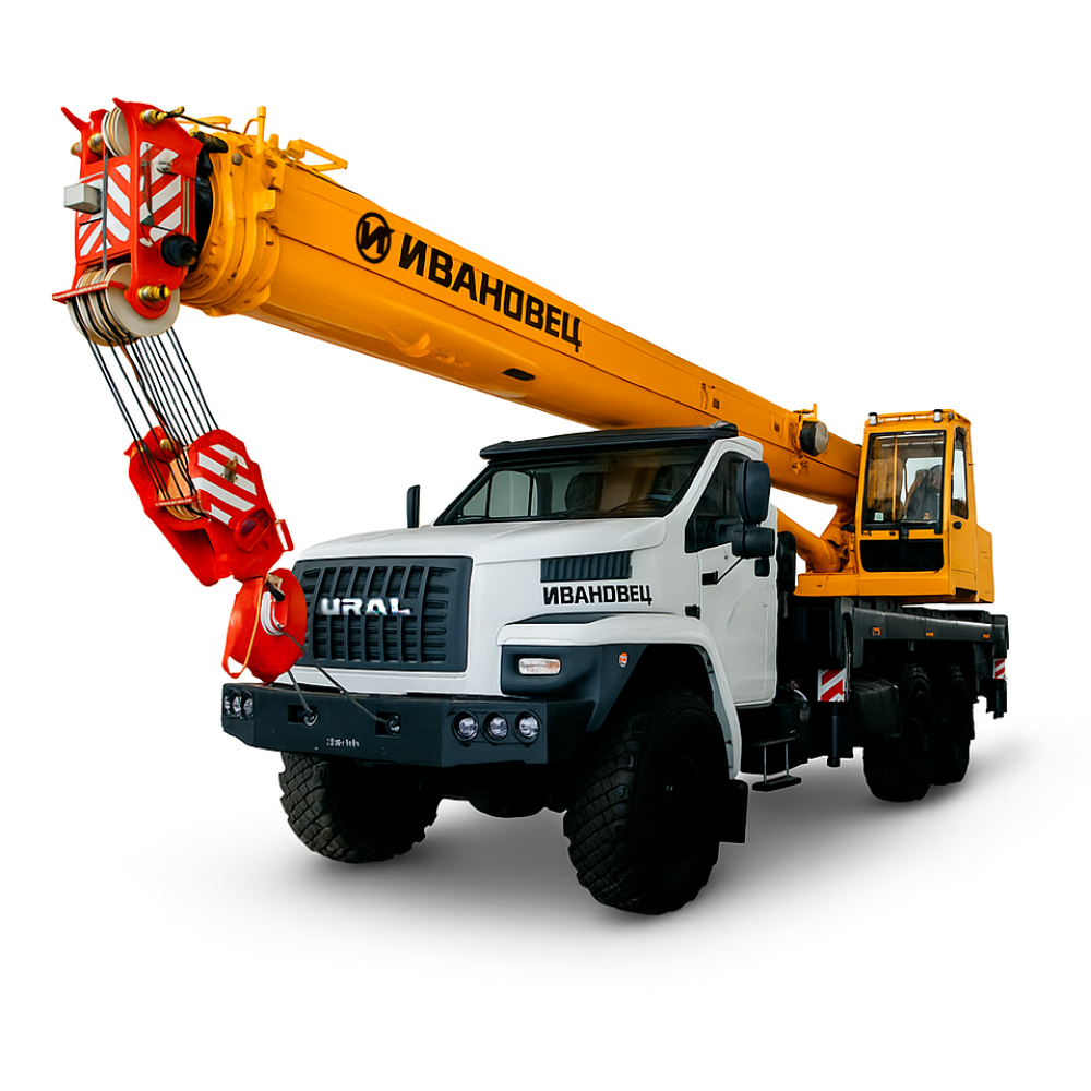 Автокран Ивановец КС-45717-2М с длиной стрелы от 10 до 22 метров и максимальной грузоподъемностью 25000 кг идеально подходит для разнообразных строительно-монтажных работ. С дополнительным гуськом длиной 9 метров он может достигать максимальной высоты подъема в 30.4 метра, что делает его незаменимым на крупных строительных объектах.